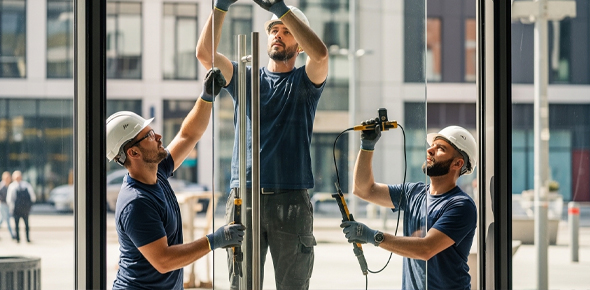 Expert glass installation with precision and quality craftsmanship.